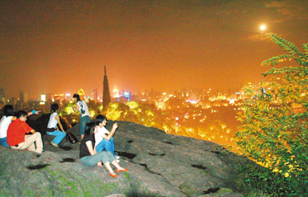 円い月は陰暦の十五日ではなく、十六日に現れると言われるので、昨日は多くの観光客は杭州の宝石山で集まって円い月を待ち望んでいた。しかし、皆に長く期待された「スター」は素早く姿を見せてから、雲に隠れた。