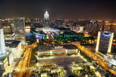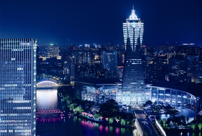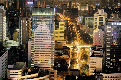 先日、記者王毅が高みに登って撮影した武林広場の夜景は、私たちに武林広場と西湖文化広場を繋がる真新しいライトショーを見せてくれ、活力のある城の斬新な姿を呈してくれた。
