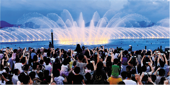 7月25日夜から、西湖の音楽噴水が「ナイトショー・モード」を展開した。毎晩7時、8時に一回ずつ噴射し、毎回は約15分間である。煌びやかな光に恵まれ、より一層美しくなった噴水は、夜の西湖の最も躍動感に溢れる輝かしい風景となり、無数の市民と観光客を引き寄せてきた。