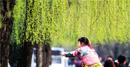 涌金池の畔に、柳の木の下に楽しんでいる子供。 吉吉 撮影