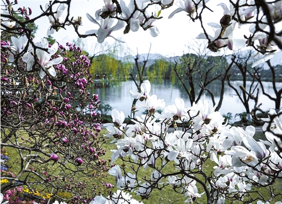 三潭印月(西湖十景の一つ)の木蓮 若農 撮影