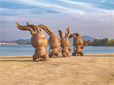 このほど、湘湖秋葉芸術祭が開幕し、1万枚余りの落葉から製作されるウサギ、猫と白鳥が登場し、高さが6メートル以上あり、可愛くて生き生きとしている。同展覧は2025年春節以降に続くという。