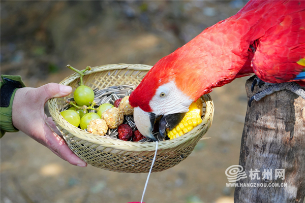 元宵節に杭州市の野生動物世界は特に動物たちにたっぷりのご馳走を準備した。