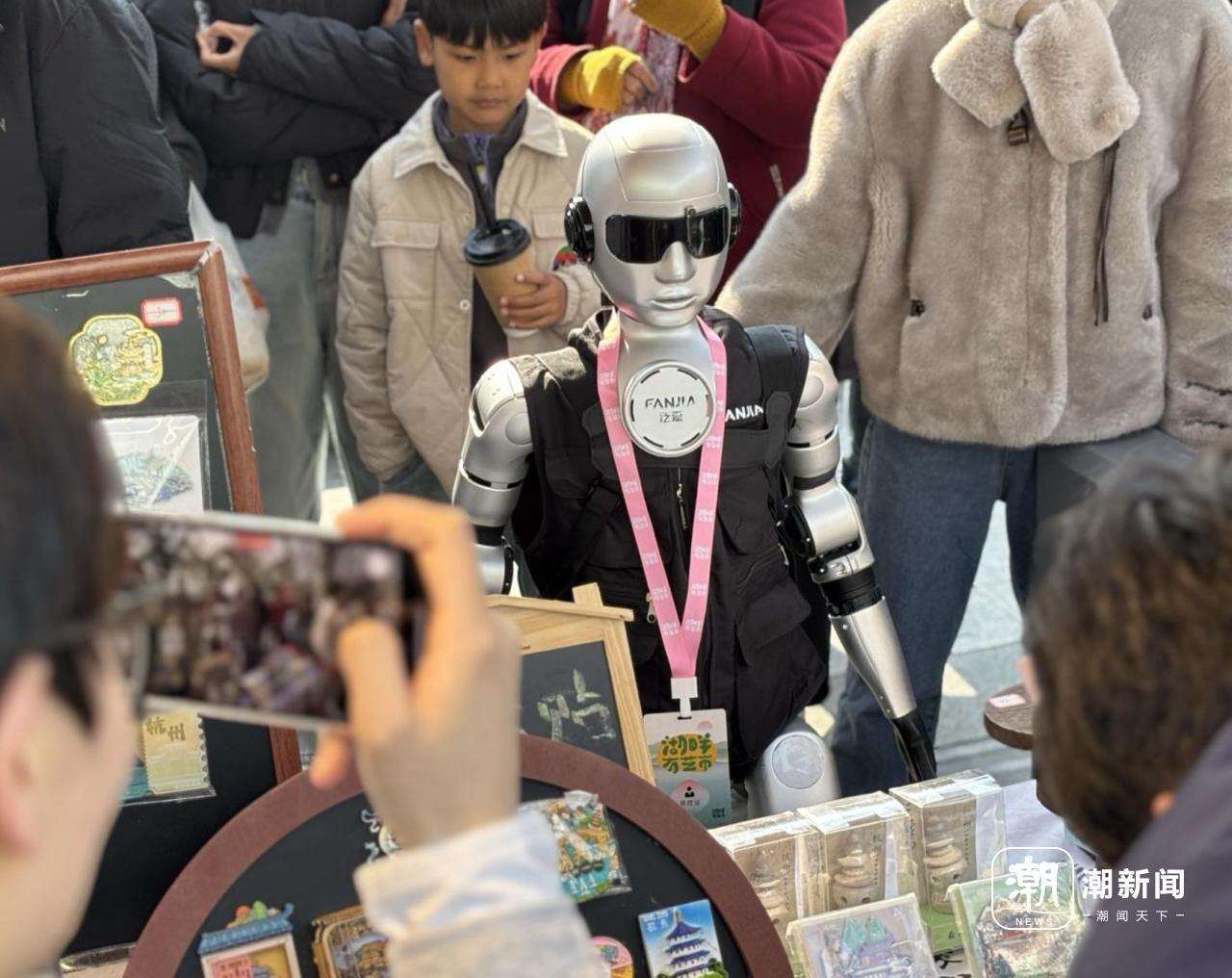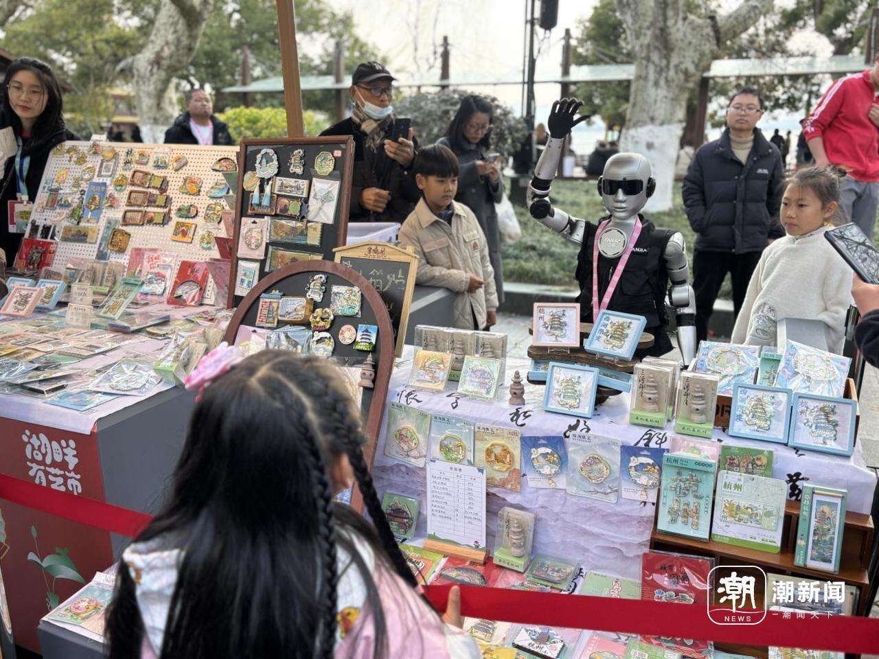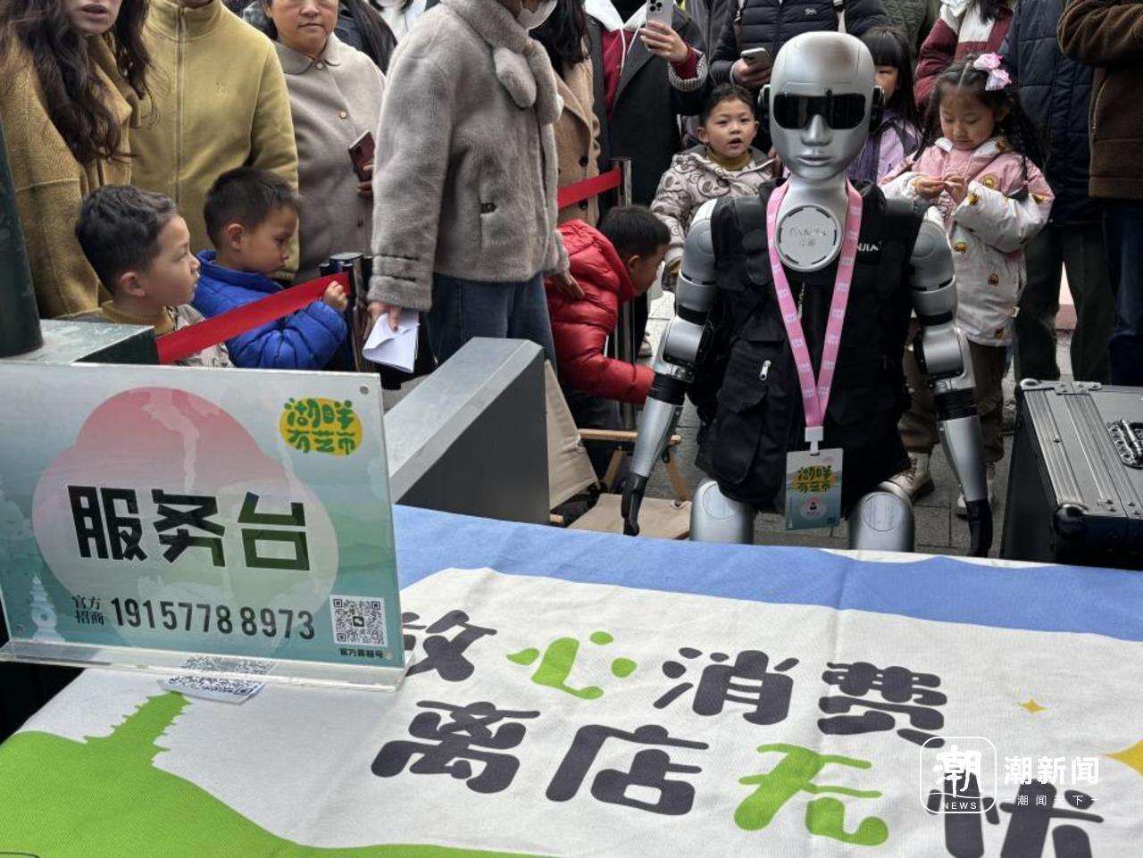 3月16日、杭州西湖のマーケットで、人型ロボットのインターンが業務を開始し、マーケットのカスタマーサービスや観光案内を効率的に担当している。