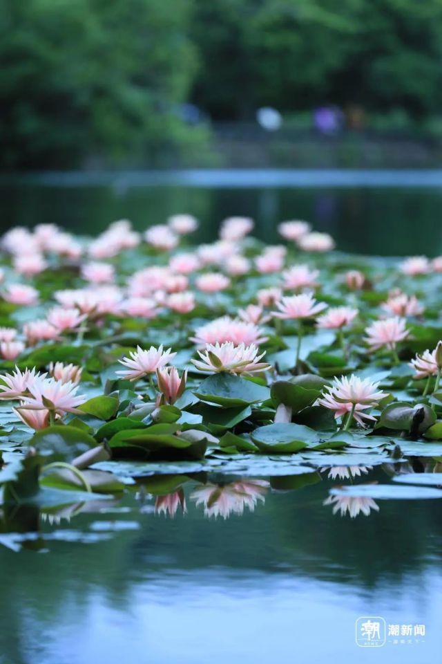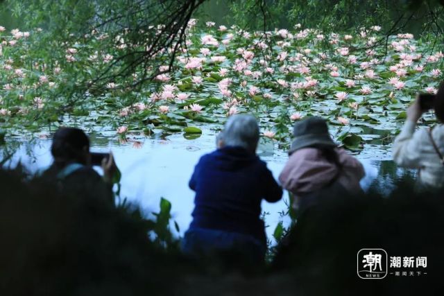 4月27日、杭州茅家埠の睡蓮が満開、観光客の足を止めた。