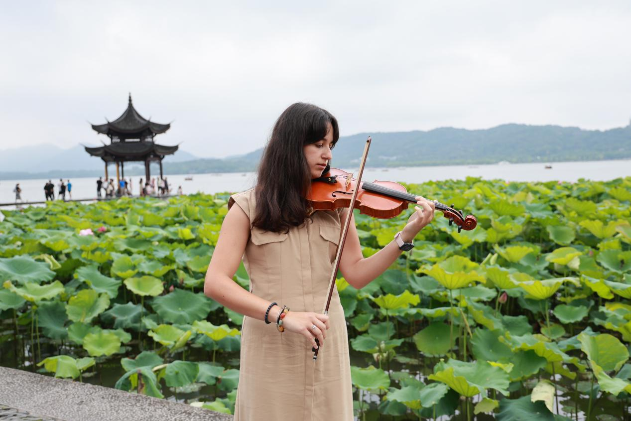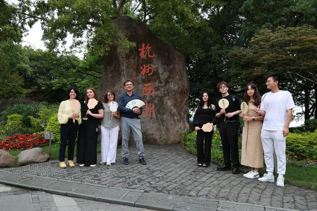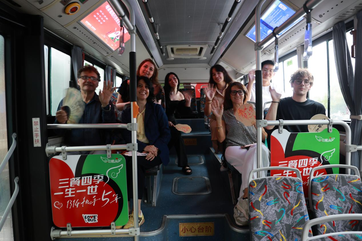 中・イ国交樹立55周年に相まって、23日に杭州にイタリア・ヴェローナからの芸術家や工商業界の代表団が訪れた。彼らは「ラブバス」を体験したり、西湖でボート遊びを楽しんだりしていた。