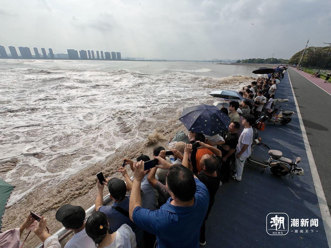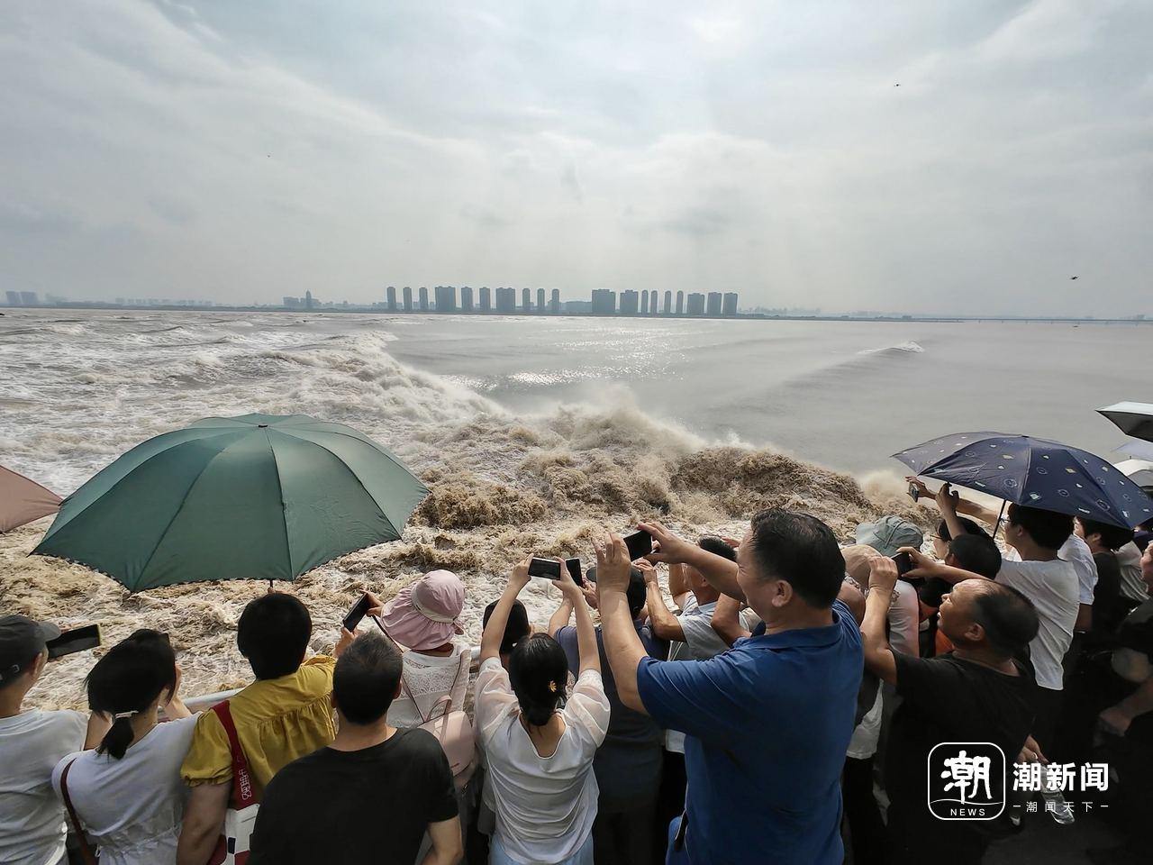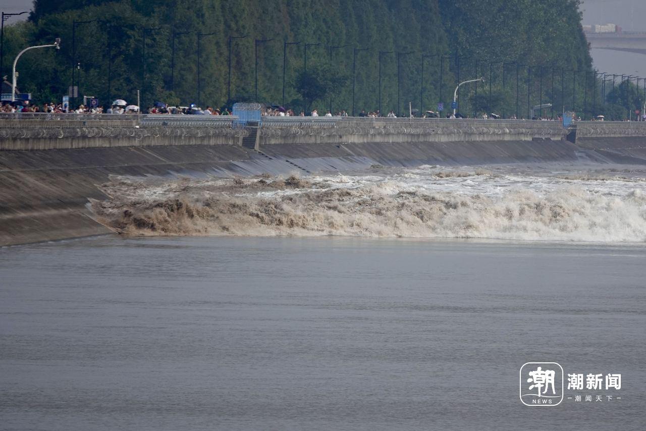 銭塘江の逆流が勢いよく流れてくる