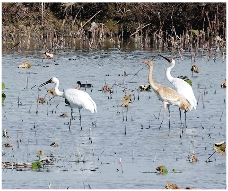 白鶴が極絶滅危惧種に指定され、全世界の数が4000羽未満である。南湖は既にこの物種の渡り途中の重要な中継地となっている。