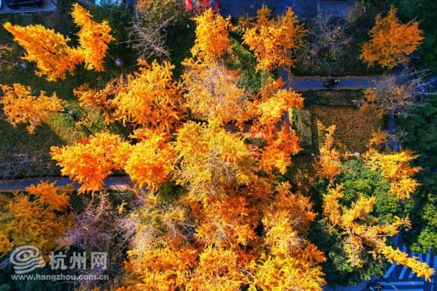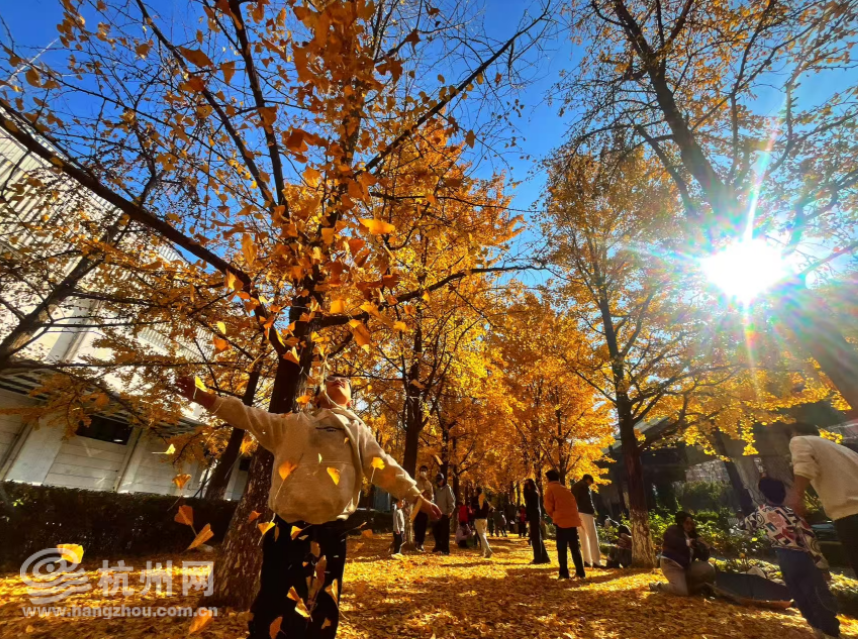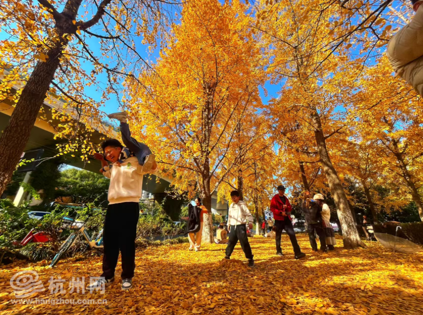 写真集:杭州市の街並みの銀杏林が親子遊び場に