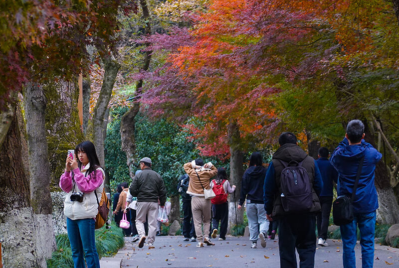 このほど、杭州九渓十八澗の紅葉が見頃を迎え、赤とオレンジの紅葉が入り混じり、水面に映し出される絶景はまるで一幅の油絵のようだ。